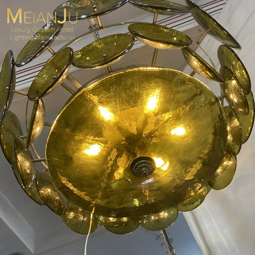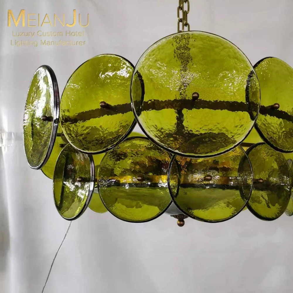 Premium Customizable Chandelier Forest Green Ripple Textured Glass Pendant Light Ceiling Lamp Multi-Color for Hotel Made